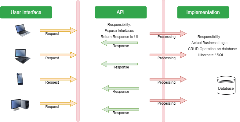 Here, comes the designing part of our Restful application. Normally a single maven module is enough for creating a project to do our stuff. But we are developing API and other application might use this API for their use. So, we need think, what we need to expose to the other applications. If you have known the concept of abstraction then you’ll easily understand this point.